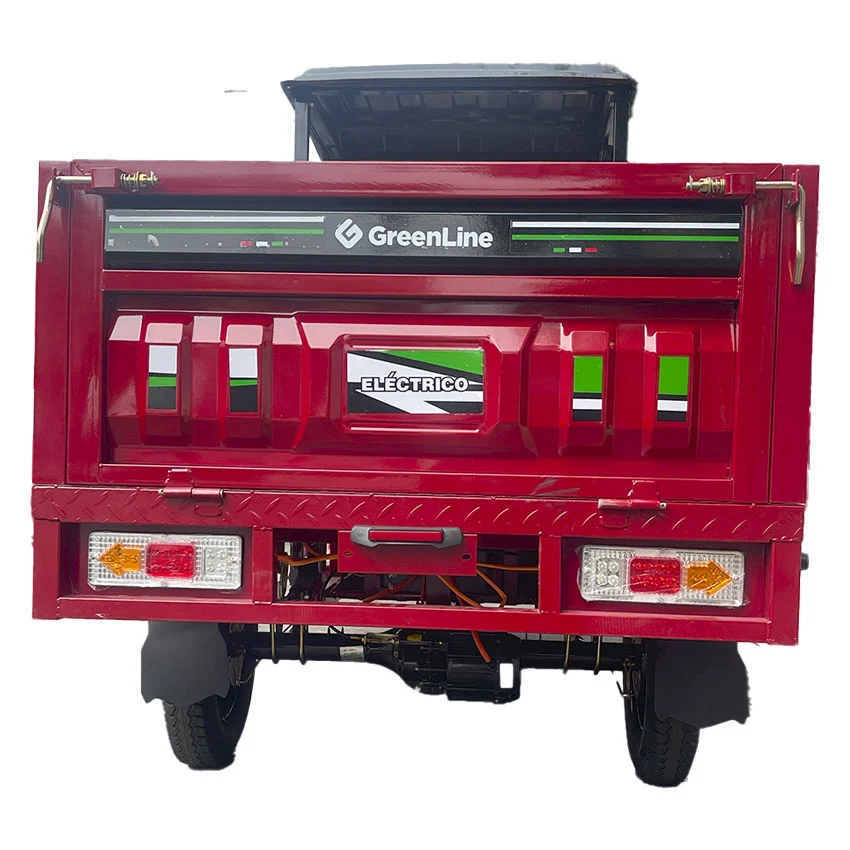 Trimoto eléctrica de carga con sistema 100% eléctrico, batería de plomo 60V45AH, motor 1200W. Chasis reforzado con tubos rectangulares, sistema de transmisión para alto torque que le ayuda a subir las subidas y llantas de 4.0-12.