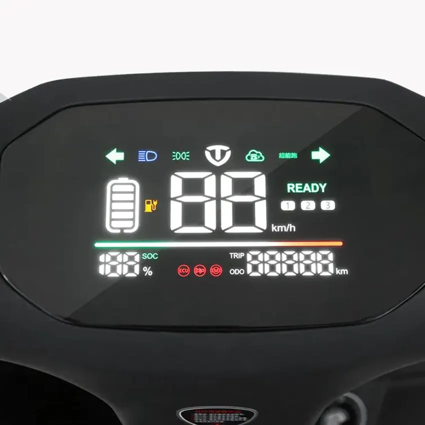 Su pantalla LED de alta definición y tamaño extra grande ofrece una interfaz clara y sencilla que muestra información clave como la velocidad, el nivel de batería y la autonomía, brindando comodidad y un toque tecnológico. - Frenado eficiente y seguro