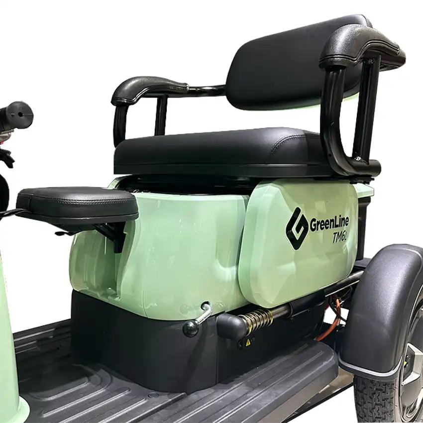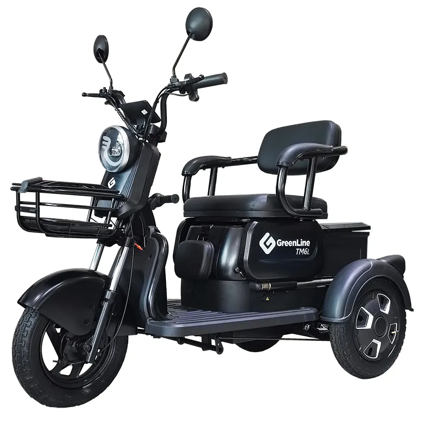 Trimoto eléctrica de paseo con batería de LITIO FERROFOSFATO 60V20AH (Vida útil de hasta 8 años) y motor 650W, cuenta con velocidad máxima de 25±5 km/h y autonomía de 45 a 55 km.